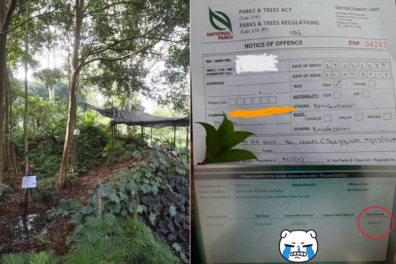 Photos of a Notice of Offence issued to the worker for plucking the leaves of a Syzygium myrtifolium tree have been circulating on social media, with netizens commenting on the amount of the fine.