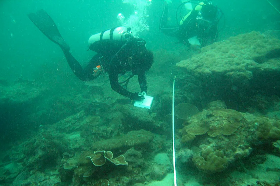 Researchers from the National University of Singapore doing a reef survey in Singapore waters.