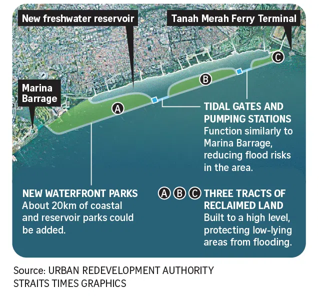 In Singapore, about 800ha of land is expected to be reclaimed off the East Coast area in the coming decades to protect the low-lying area from rising sea levels.