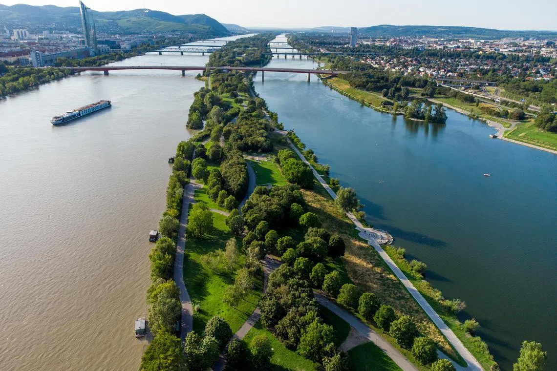 In Vienna, the Danube River running through the Austrian city has a channel constructed beside it to increase its capacity to hold rainwater in the event of a flood.