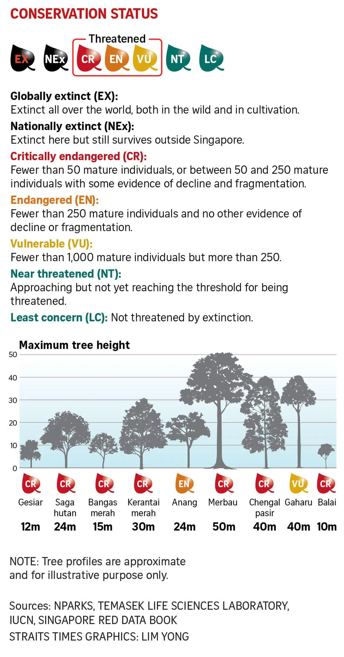The race against the clock is especially urgent for Singapore’s critically endangered trees, which number fewer than 50 mature individuals in the wild.