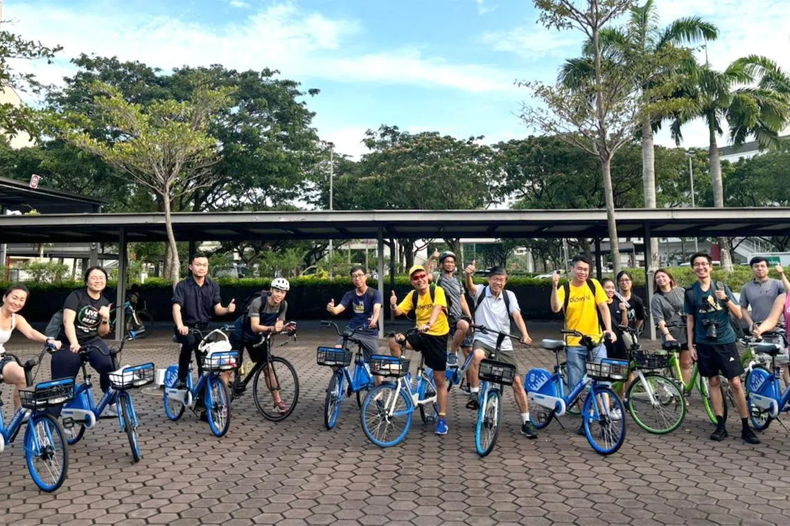 Move&Joy awards participants points that can be redeemed for shopping vouchers when they cycle on Friday mornings from Bishan to Funan mall, and record their journey on its app.