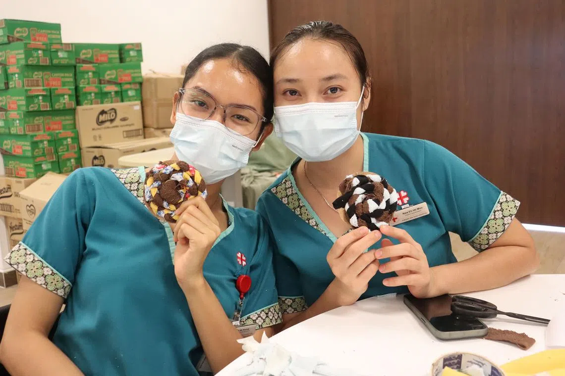 Upcycle old banners and fabrics into lanyards and coasters at upcycling workshops by Kwong Wai Shiu Hospital during Go Green SG 2025.