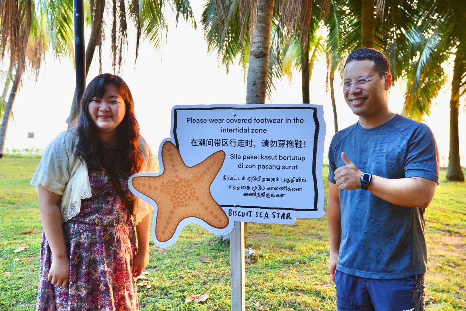 The signs were unveiled at Changi Beach Park on May 21, with each sign communicating essential intertidal etiquette while being paired with a cartoon of hand-drawn native intertidal fauna.
