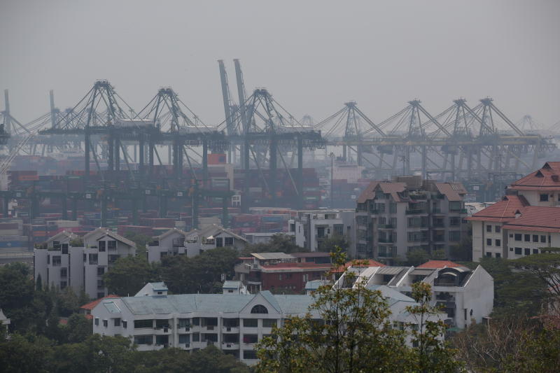 View of PSA Pasir Panjang Terminal at around 1.45pm on Sept 26, 2019. The 24-hour PSI reading in the southern part of Singapore was 66 as at 1pm on Sept 26, 2019.