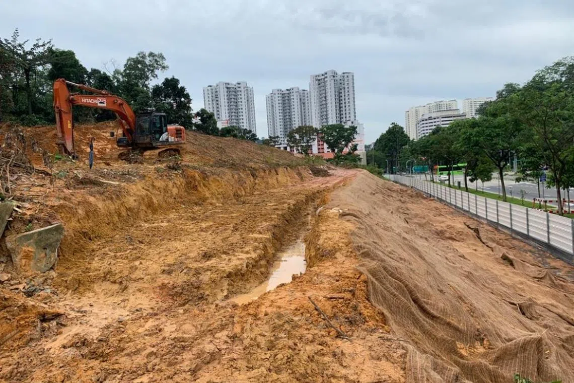 Due to the hilly terrain, HDB set out to construct the drains to collect silty water in two stages.