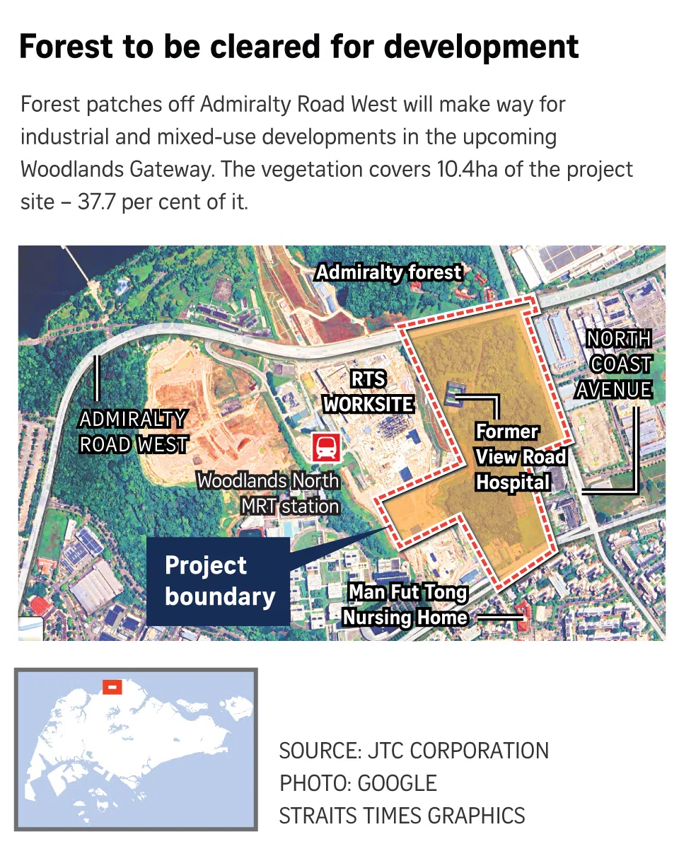 ST reported in August that some 10.4ha of forest in Woodlands, about the size of 15 football fields, could be felled, according to an environmental impact assessment.