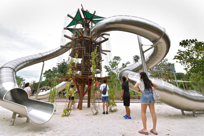 At the 2.3ha Forest Ramble - which NParks described as the largest nature play garden in the heartland - children can enjoy activities at 13 adventure stations, where they emulate the movements of native squirrels, crabs and other animals.