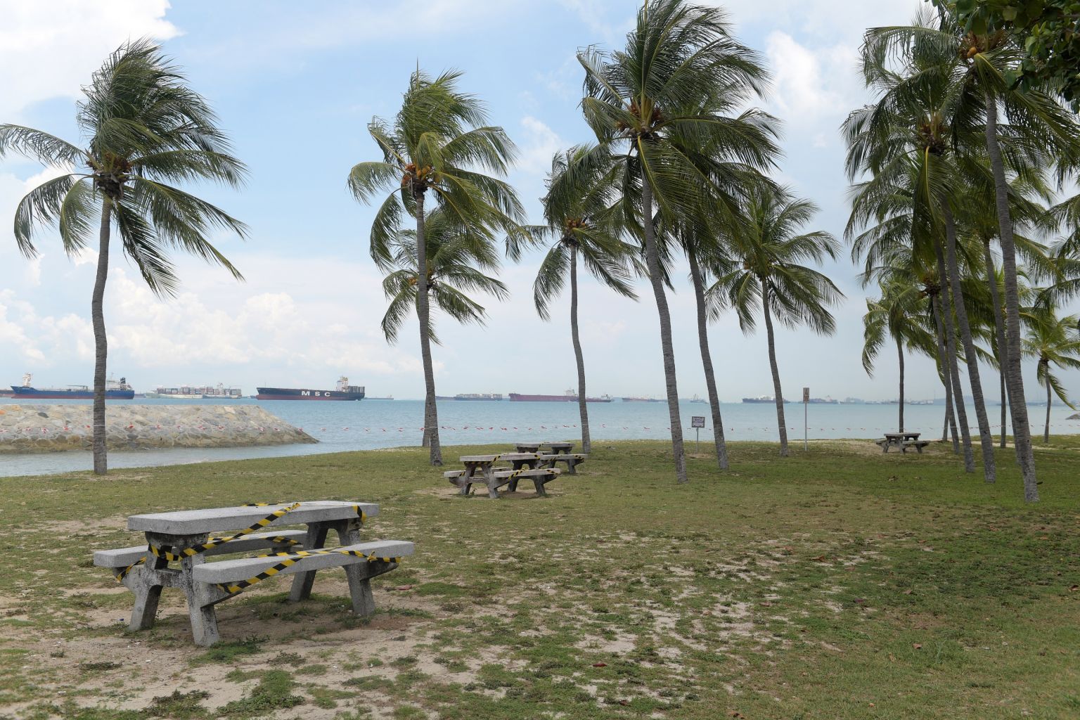The beach at East Coast Park, closed off to the public, on March 13, 2020.