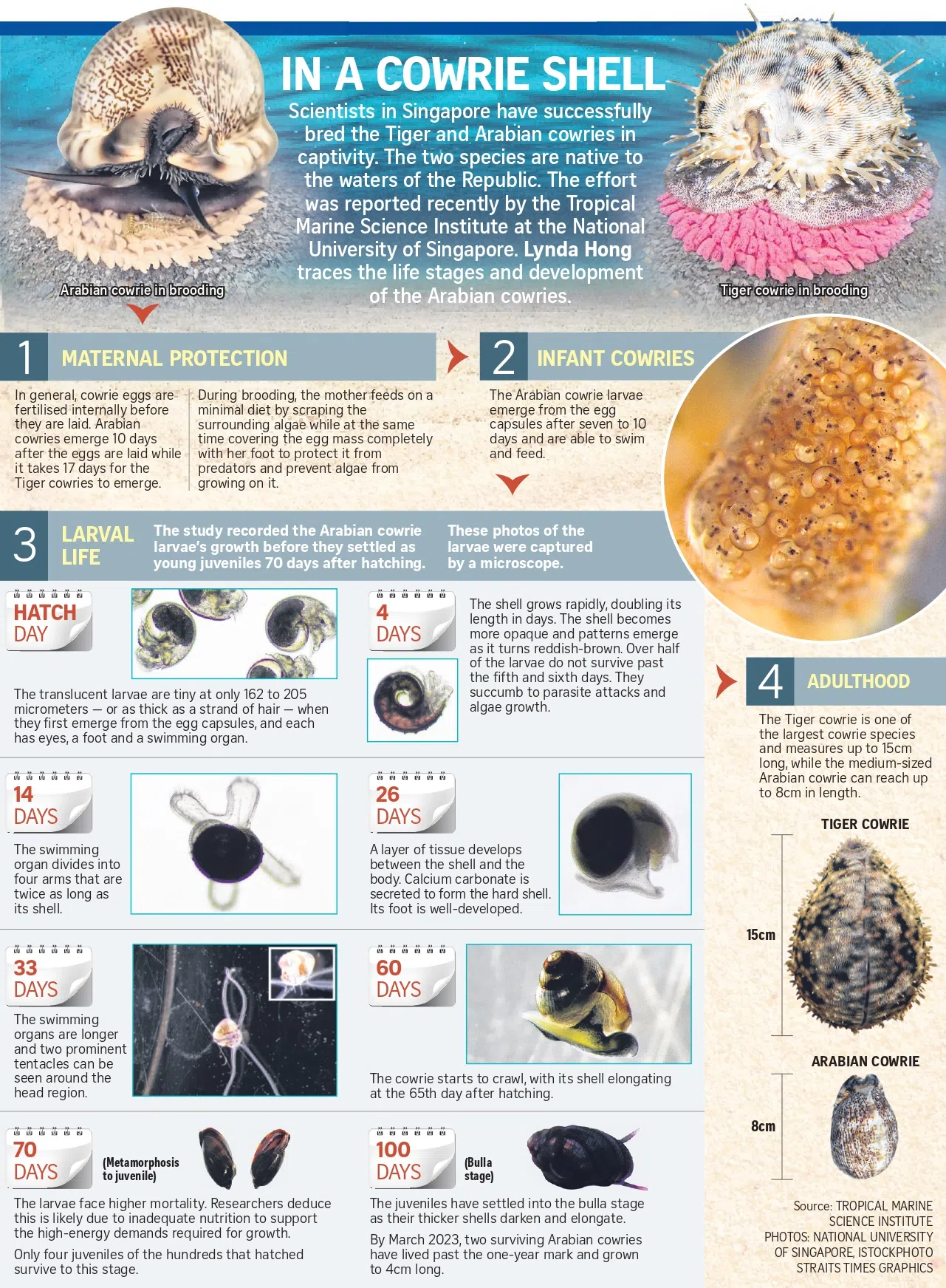 Dr Neo concluded that the results can be incorporated into how to culture the larvae “to increase the success of cowrie reproduction in captivity”.