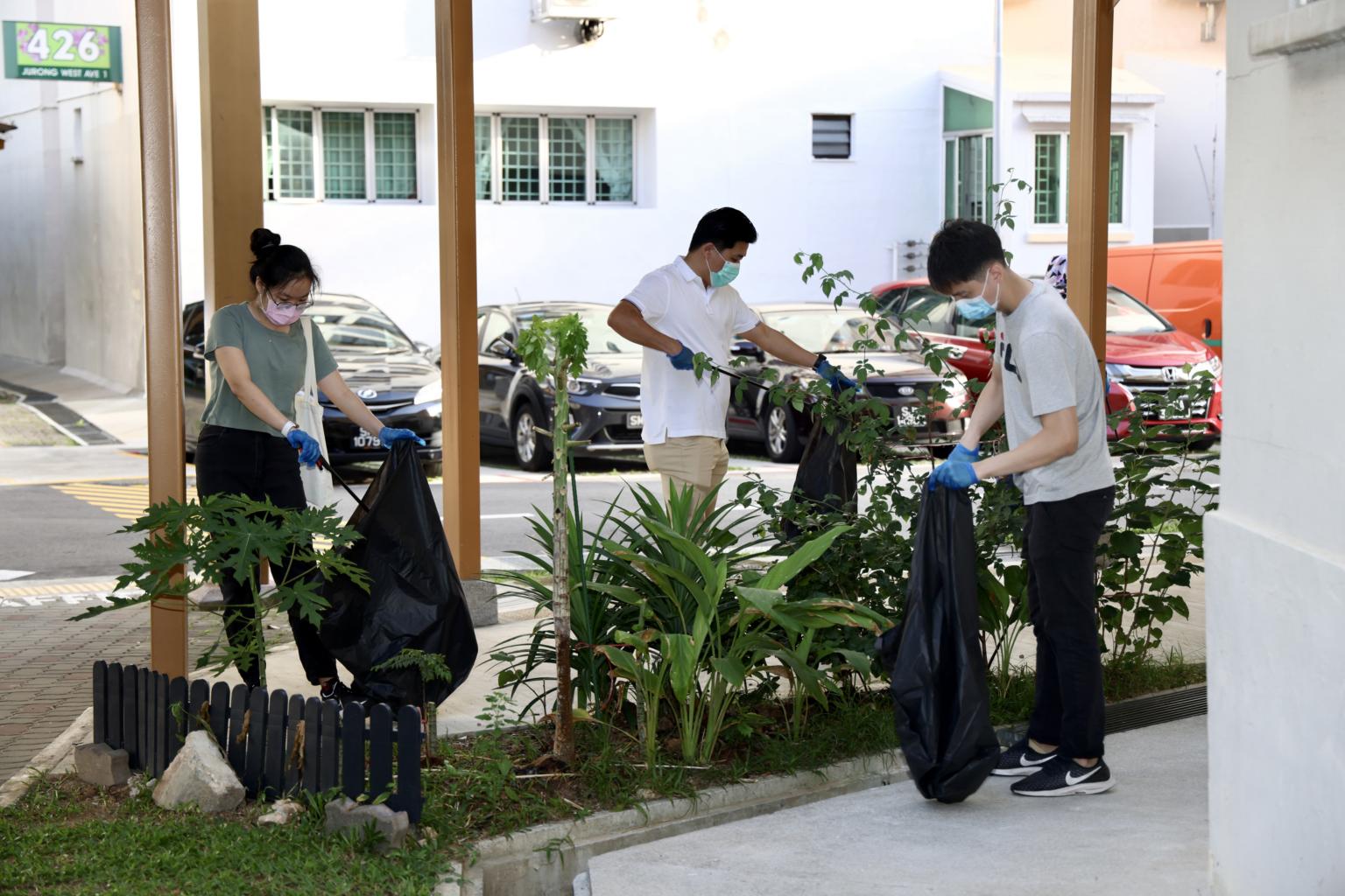As part of the Jurong-Clementi town council's initiatives, residents took part in a litter-picking event at Block 425 Jurong West Avenue 1 to spring-clean the area.