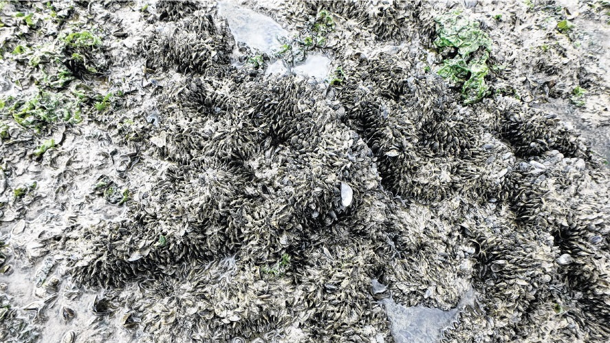 Invasive American brackish-water mussels have been encrusting Kranji mudflats.