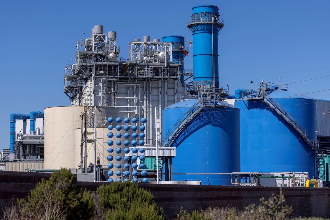 A natural gas power generating plant is shown in Huntington Beach, California on June 24, 2021.