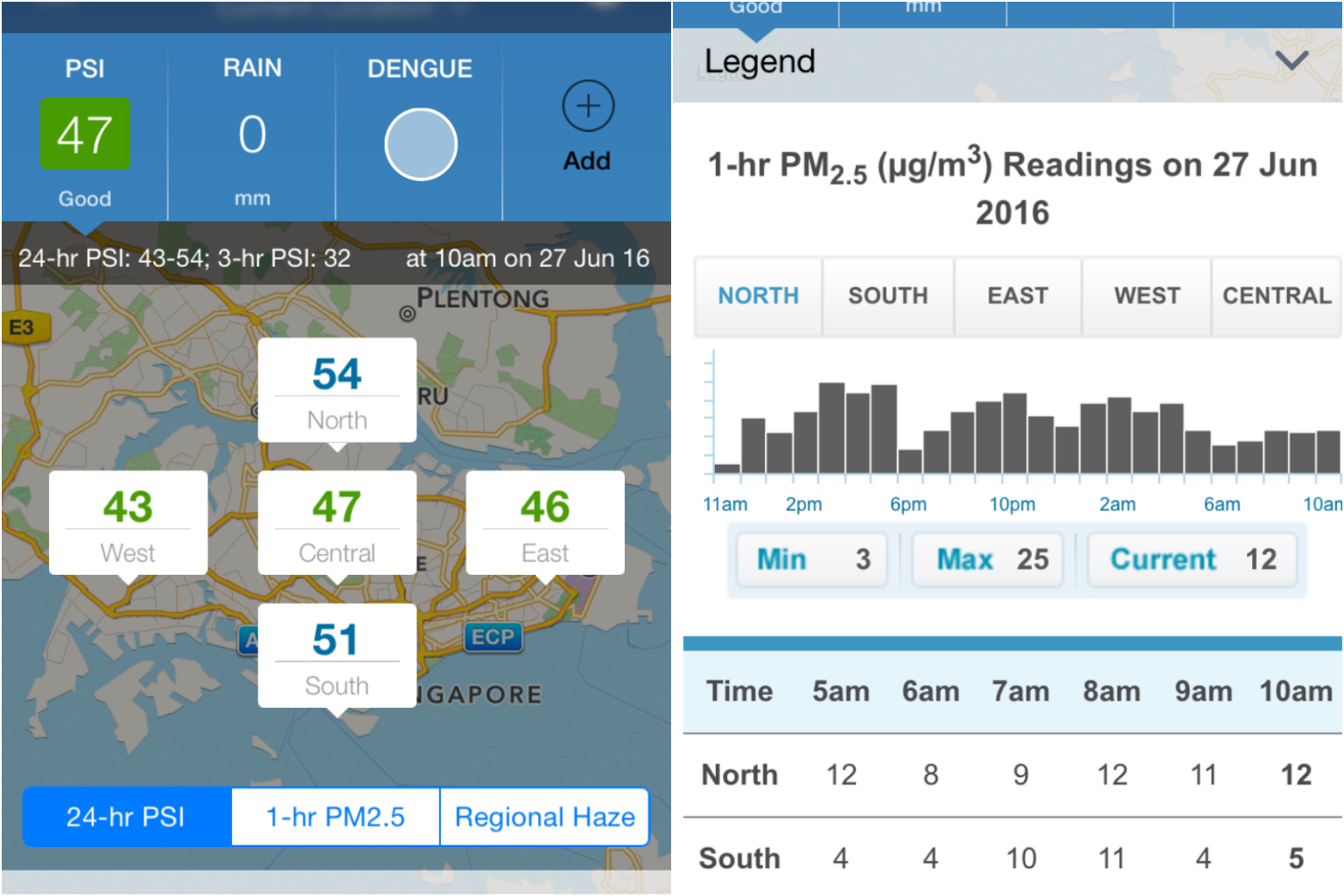 The new hourly PM2.5 readings displayed on the NEA's myENV app.