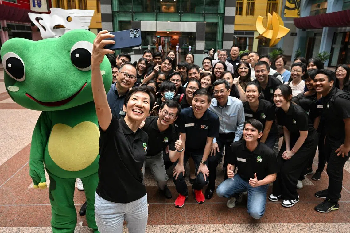 Minister for Sustainability and the Environment Grace Fu taking a wefie with participants at the launch of the National Environment Agency’s Youth for Environmental Sustainability Leaders Programme on Sept 5.
