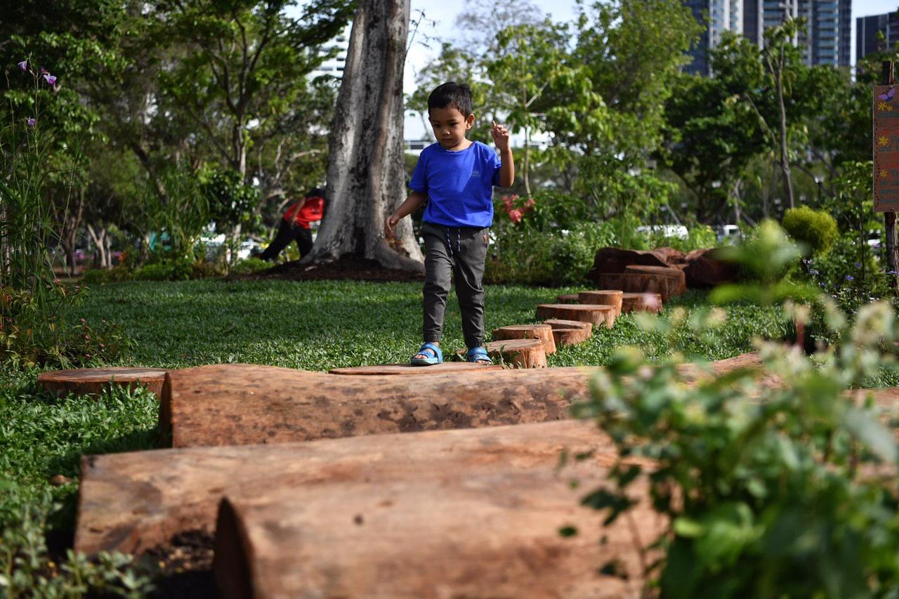 Ahmad Zahid, 3, plays at the Nature Playgarden in the Cyclist Park on Nov 23, 2019. ST PHOTO: CHONG JUN LIANG
