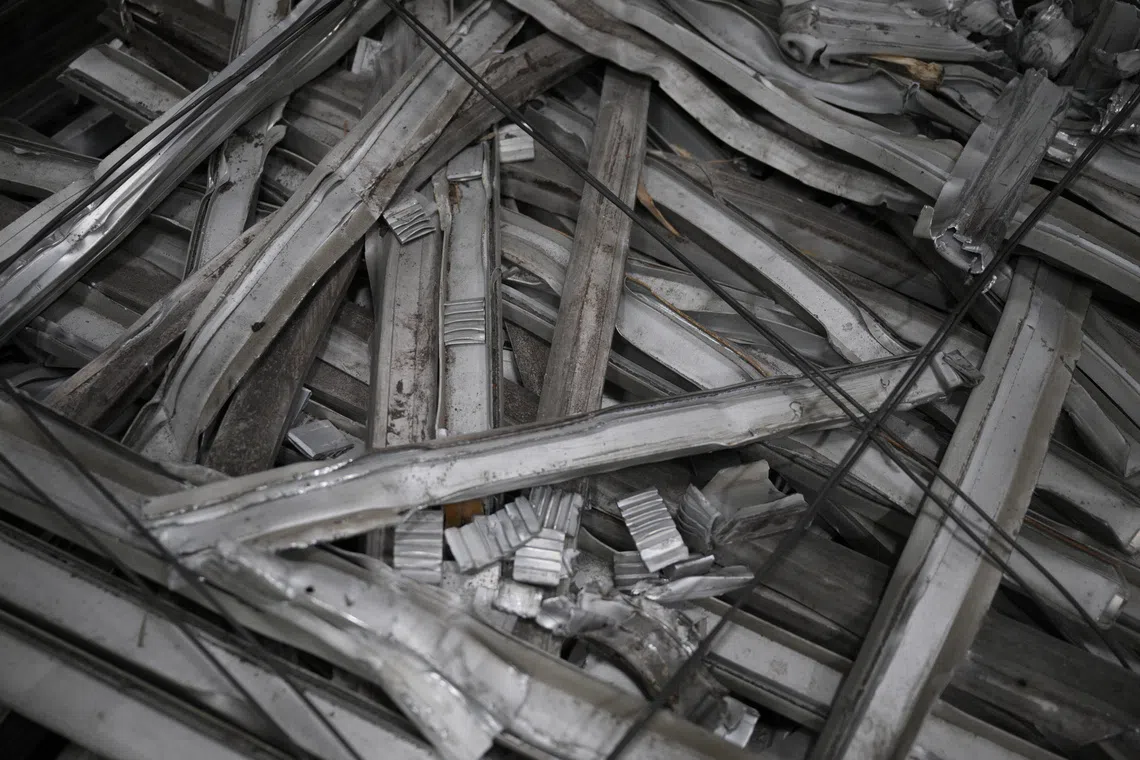 Aluminium frames salvaged as part of solar panel recycling at Redux's automated solar panel recycling facility.