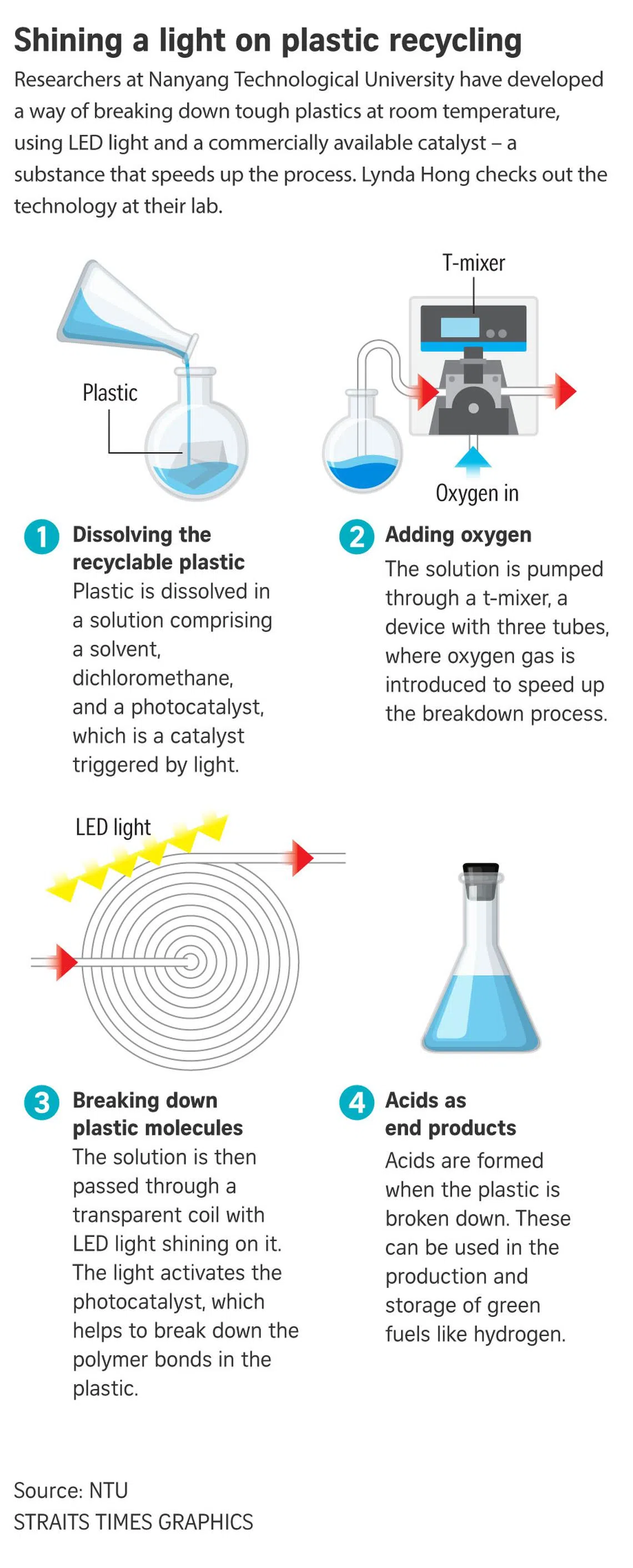 SINGAPORE - Plastic bags and takeaway boxes, styrofoam boxes and even PVC sewage pipes could be chemically recycled more efficiently to leave a smaller carbon footprint, in a new process developed by scientists from Nanyang Technological University (NTU).