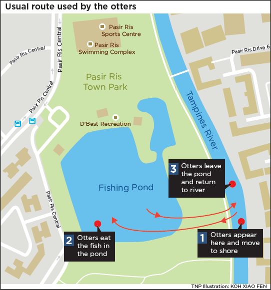 Another angler seemed to welcome the otters. "They provide an interesting feature for visitors to the pond," said Mr Roland Tan, 66.