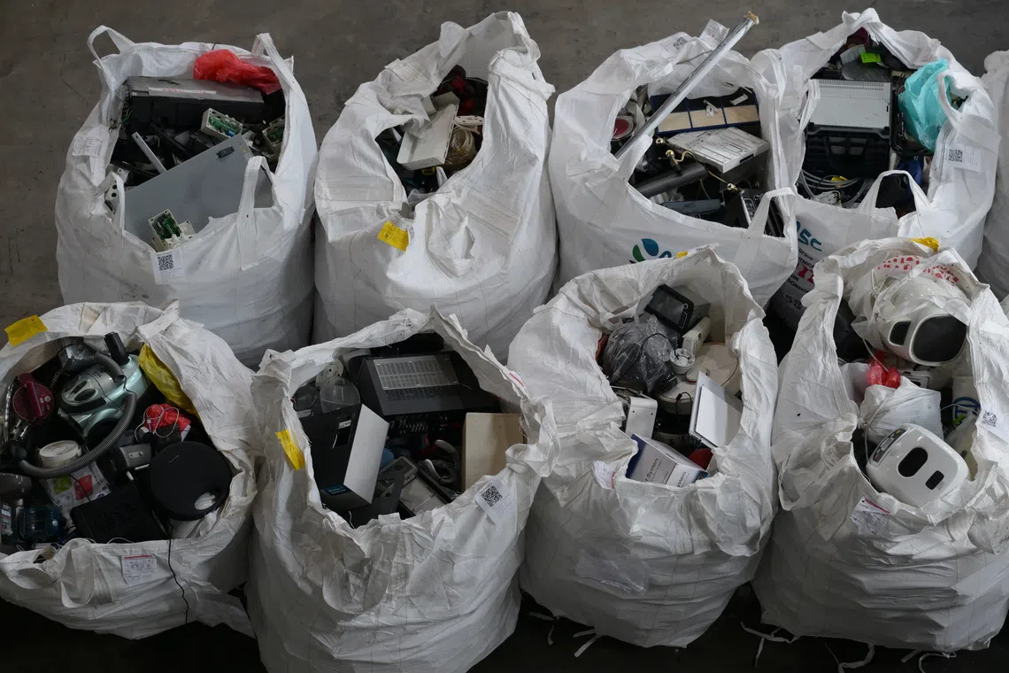 Collected e-waste is sorted at Alba E-Waste Smart Recycling's warehouse in Tuas.