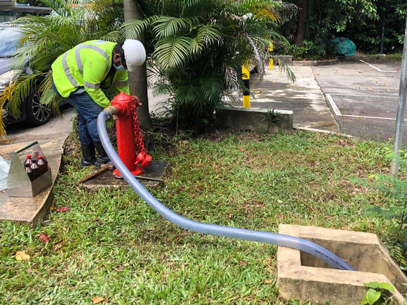 PUB officers have been flushing the water mains to remove affected water as an extra precaution.