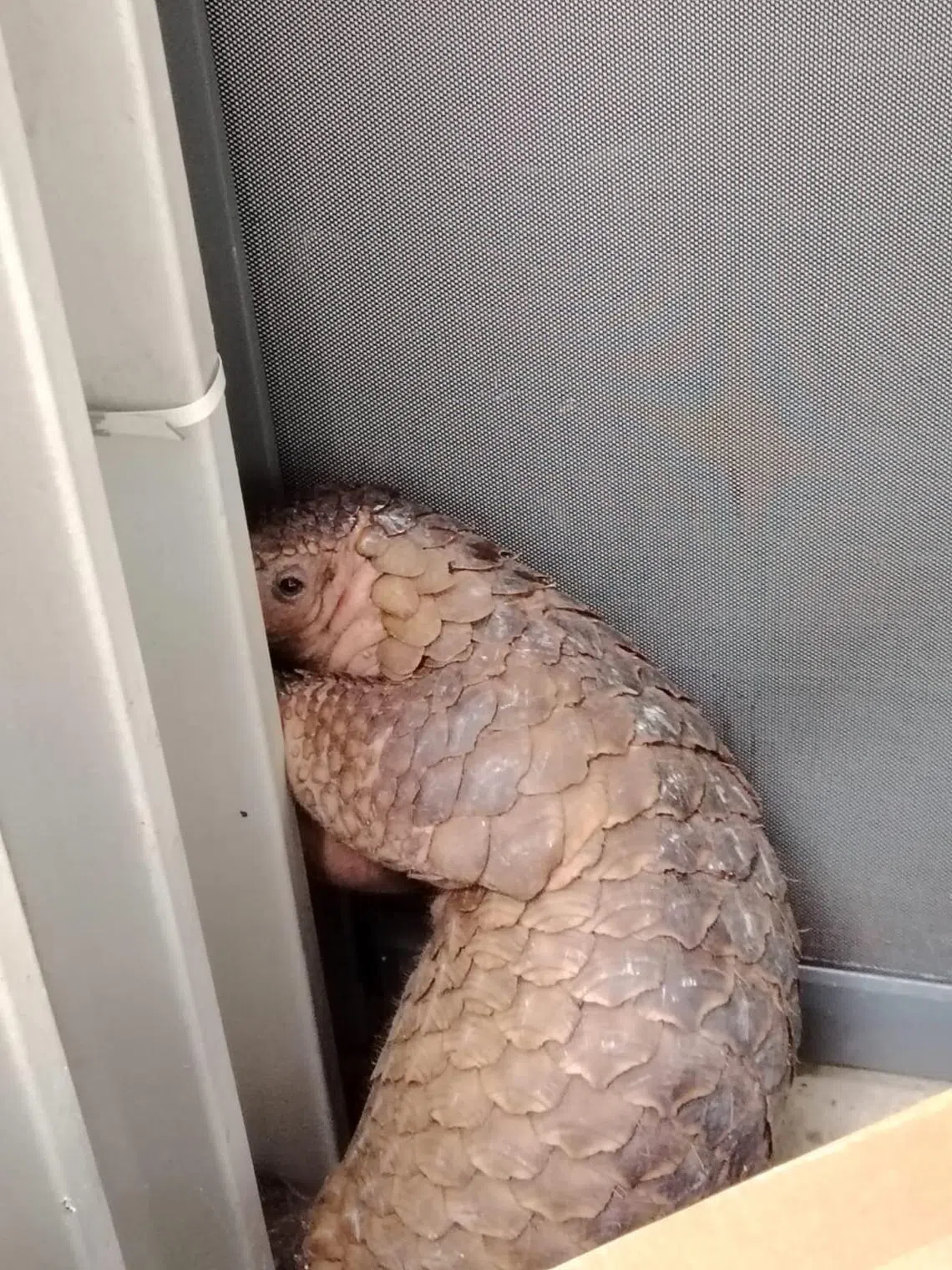 Berani, a male pangolin that received the world’s first known pangolin bone surgery in 2018.