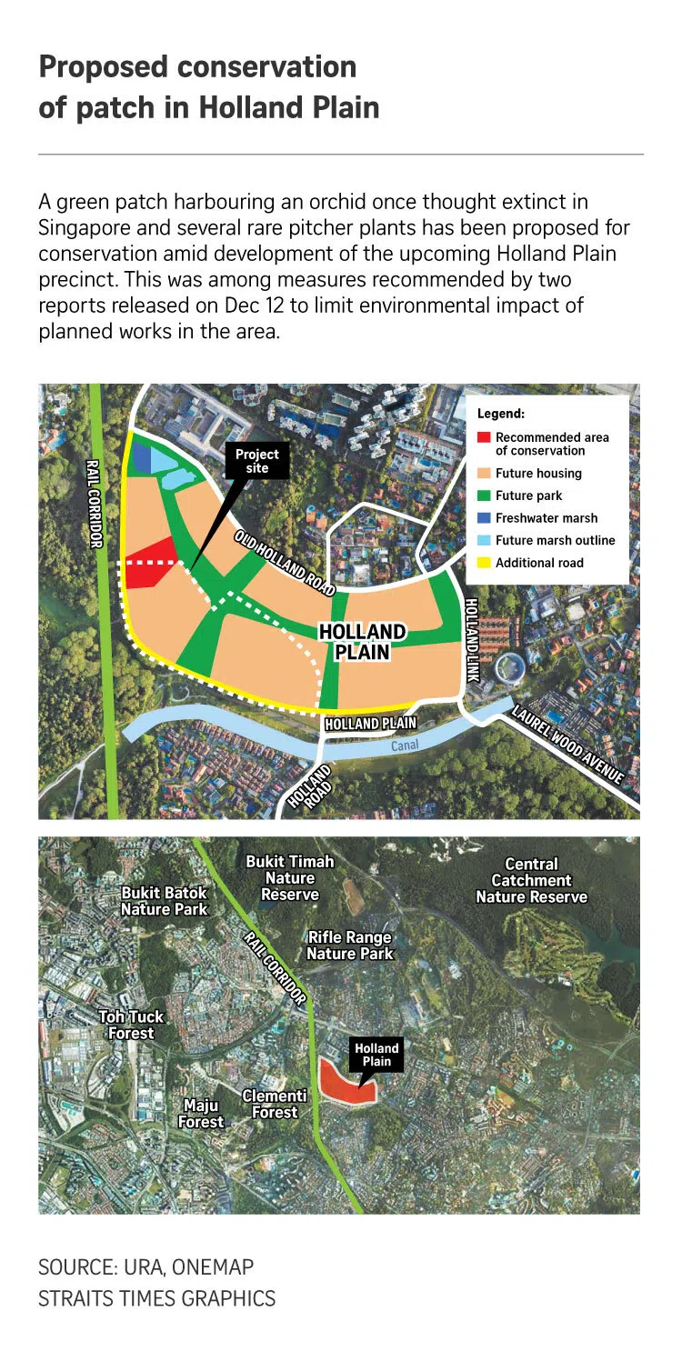 SINGAPORE - A patch of scrubland in Holland Plain is slated for conservation, with the authorities planning to earmark land in the private housing precinct to protect an orchid once thought extinct in Singapore, as well as a stronghold for pitcher plants.