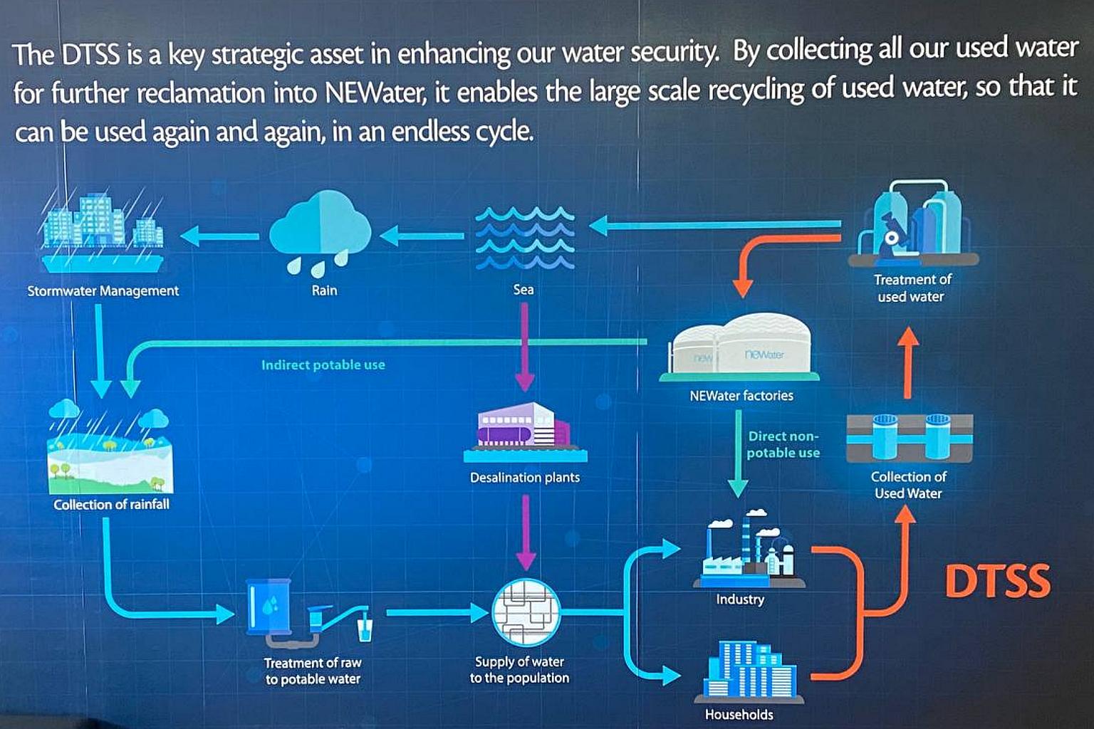 DTSS is essentially a network of deep tunnel sewers that makes use of gravity to channel used water to three centralised treatment plants, where the water is purified to produce Newater.
