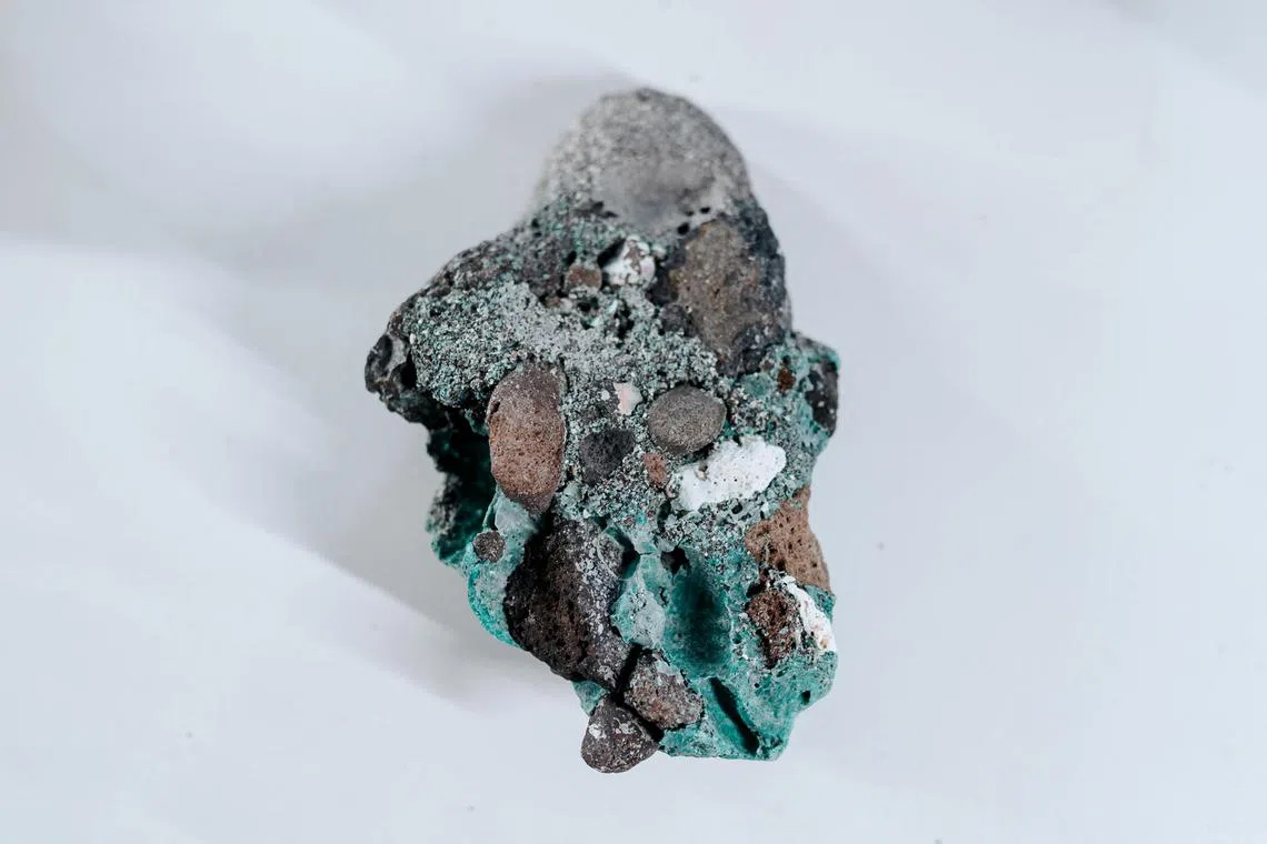 The peculiar-looking, blue-green “plastistones” are composites formed when materials such as heavy metals, organic solvents and microplastic debris are fused into, or adhere to, the surface of sedimentary rocks.