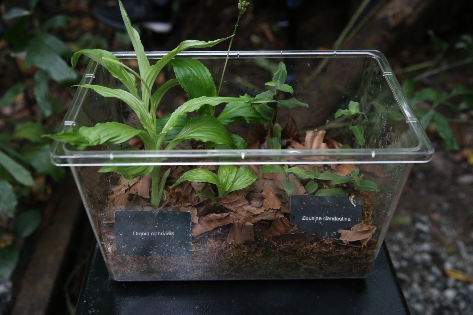 Both species - the common snout orchid (Dienia ophrydis) and hidden zeuxine (Zeuxine clandestina) - have not only grown taller than the heights they were observed to reach in the forest, but have also flowered and borne fruit.