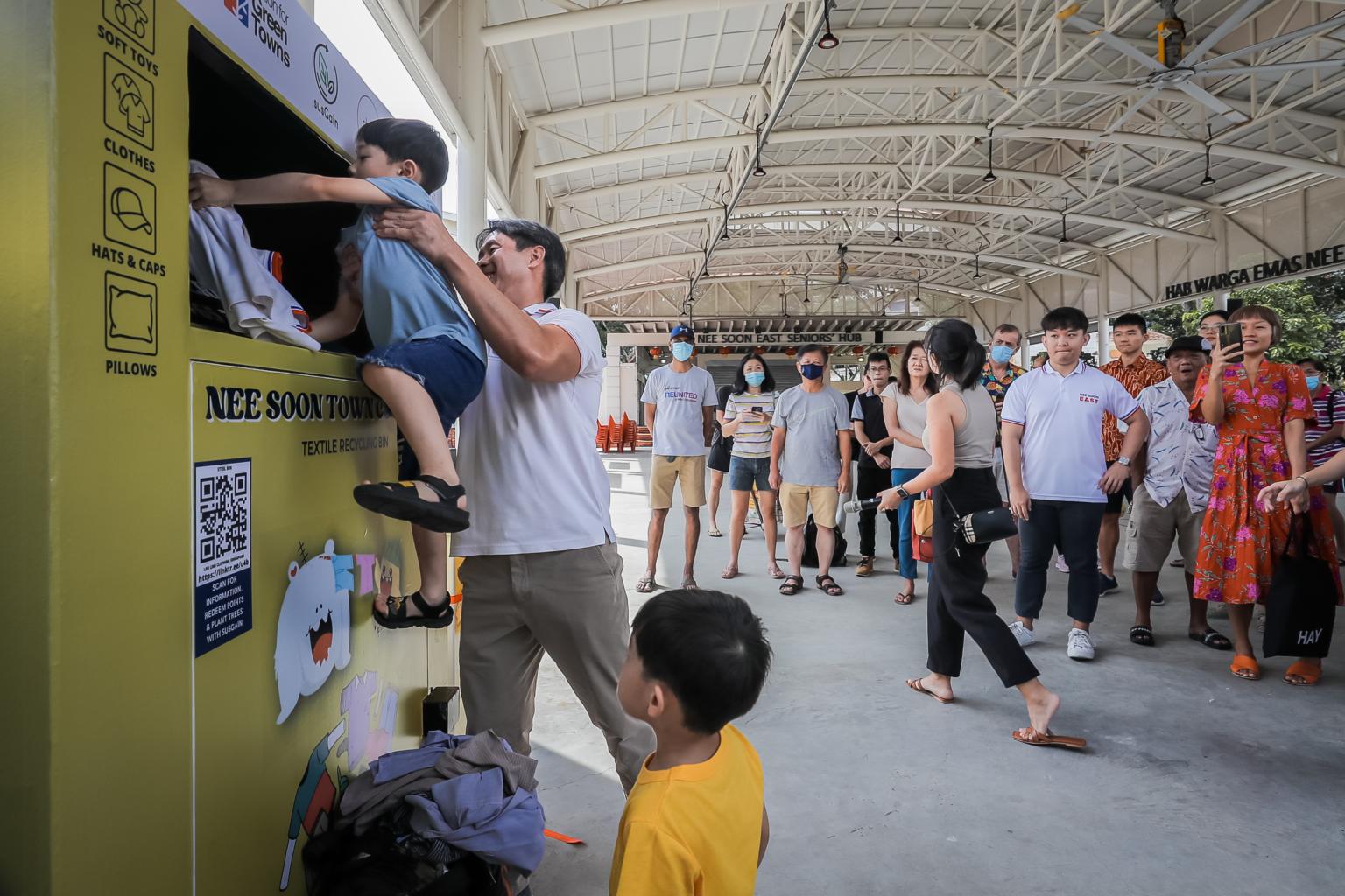 On Saturday, Nee Soon GRC MP Louis Ng launched the facility at Block 293 Yishun Ring Road by donating a bag of textiles. He was joined by residents who participated in the three-hour recycling drive to mark the hub's launch, where Nee Soon Town Council collected 171.25kg of textiles and 50kg of paper.