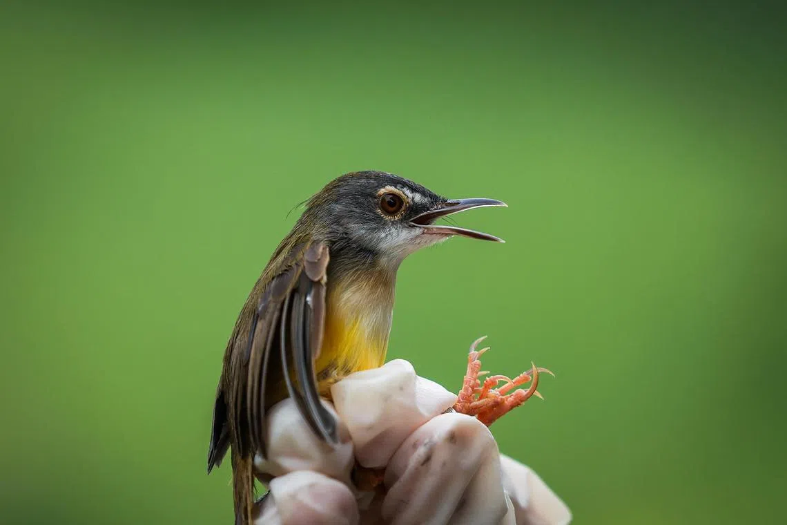 A yellow-bellied prinia was among the birds caught during the National Parks Board’s Pulau Ubin biosurveillance exercise on Dec 5.