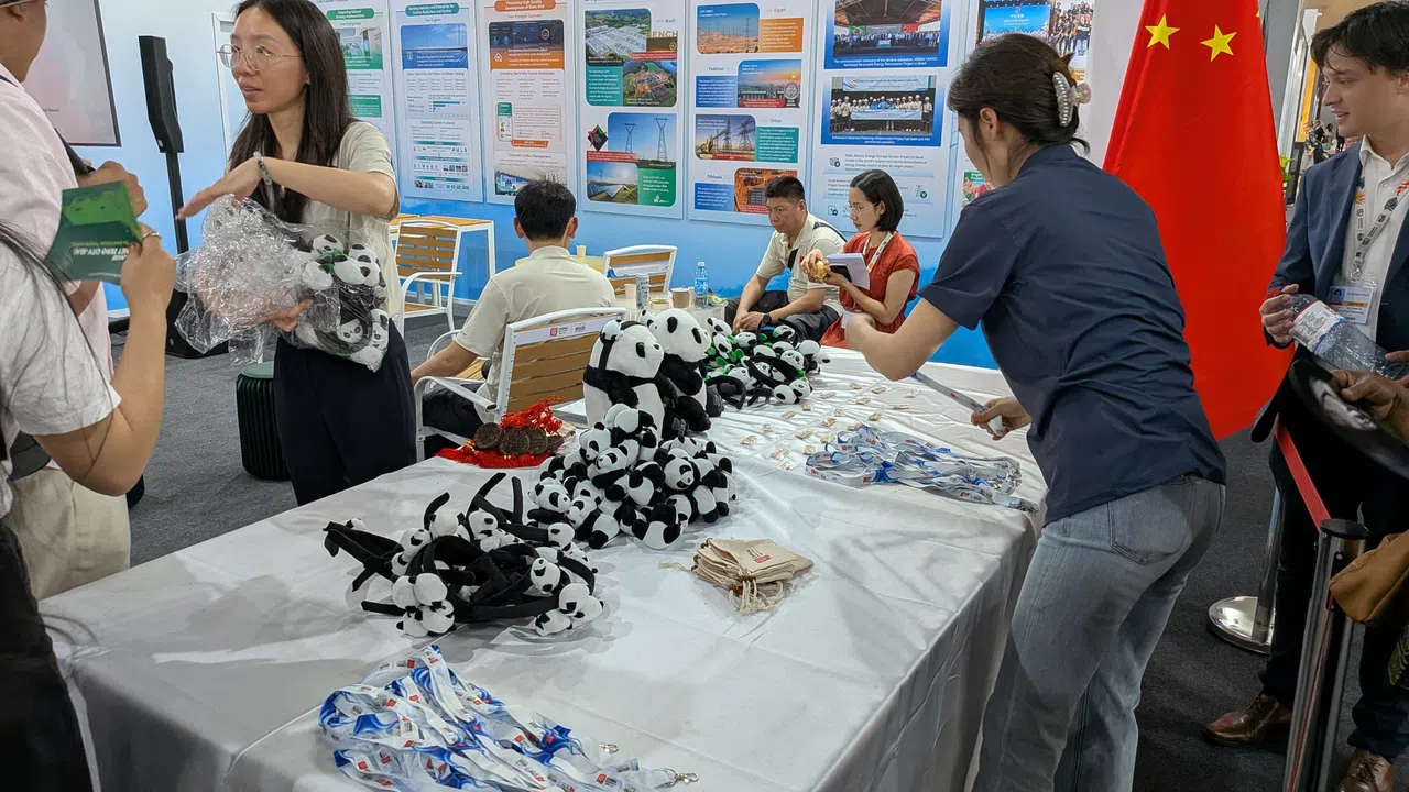 Chinese-manufactured electric vehicles ferried heads of state and delegates around Belem, grand music played from its pavilion in the main passageway, and panda-themed headbands were given to those who attended the side events at its pavilion.