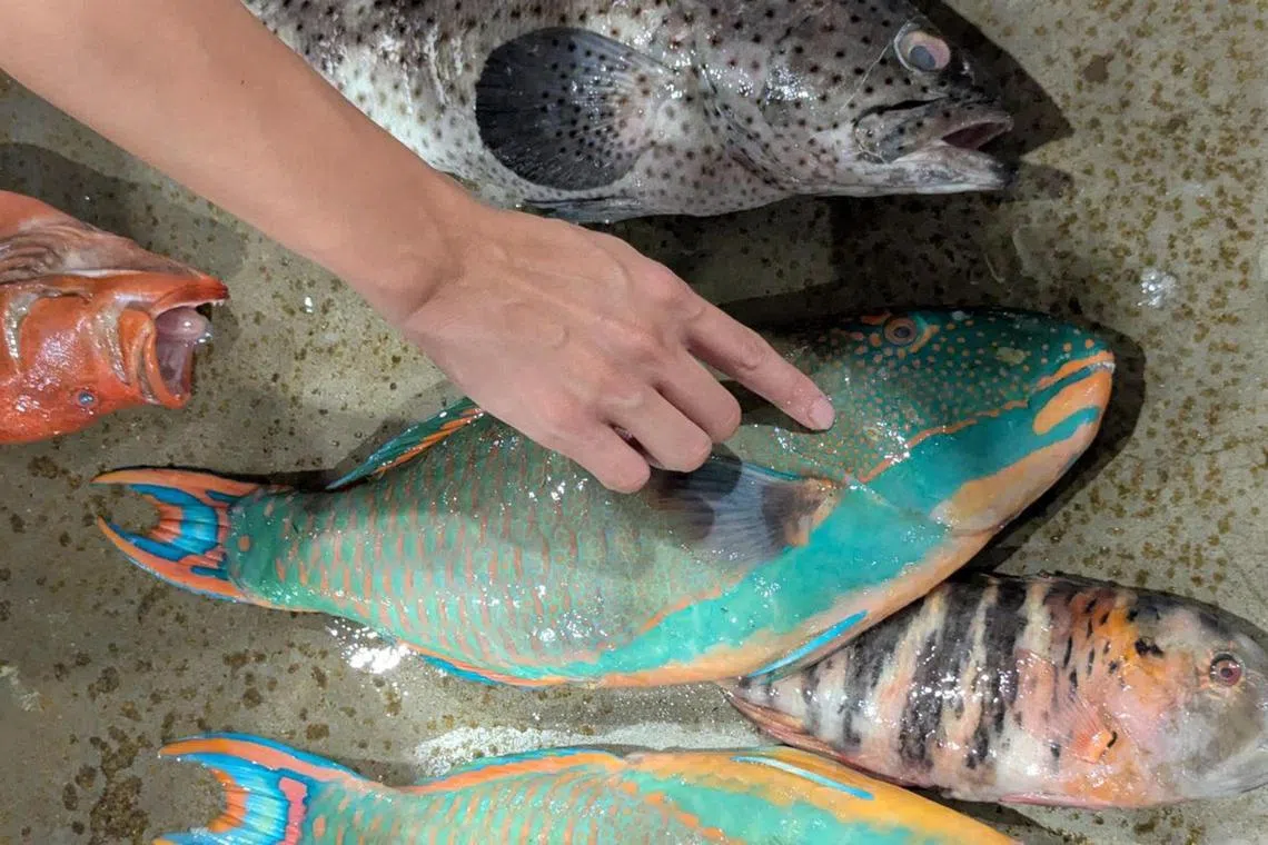 Another unusual fish we saw is the ocellated parrotfish that a fishmonger gave to Mr Ong for free, a practice often used to dispose of unpopular catch and build rapport.