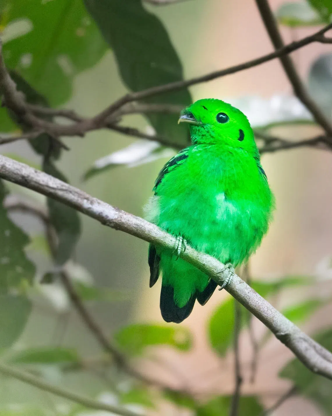 The green broadbill was declared extinct here sometime after 1941, but is considered by the Nature Society (Singapore) Bird Group Records Committee to be a rare, non-breeding visitor.