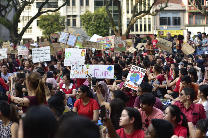 Participants at the Singapore Climate Rally in Hong Lim Park on Sept 21, 2019.