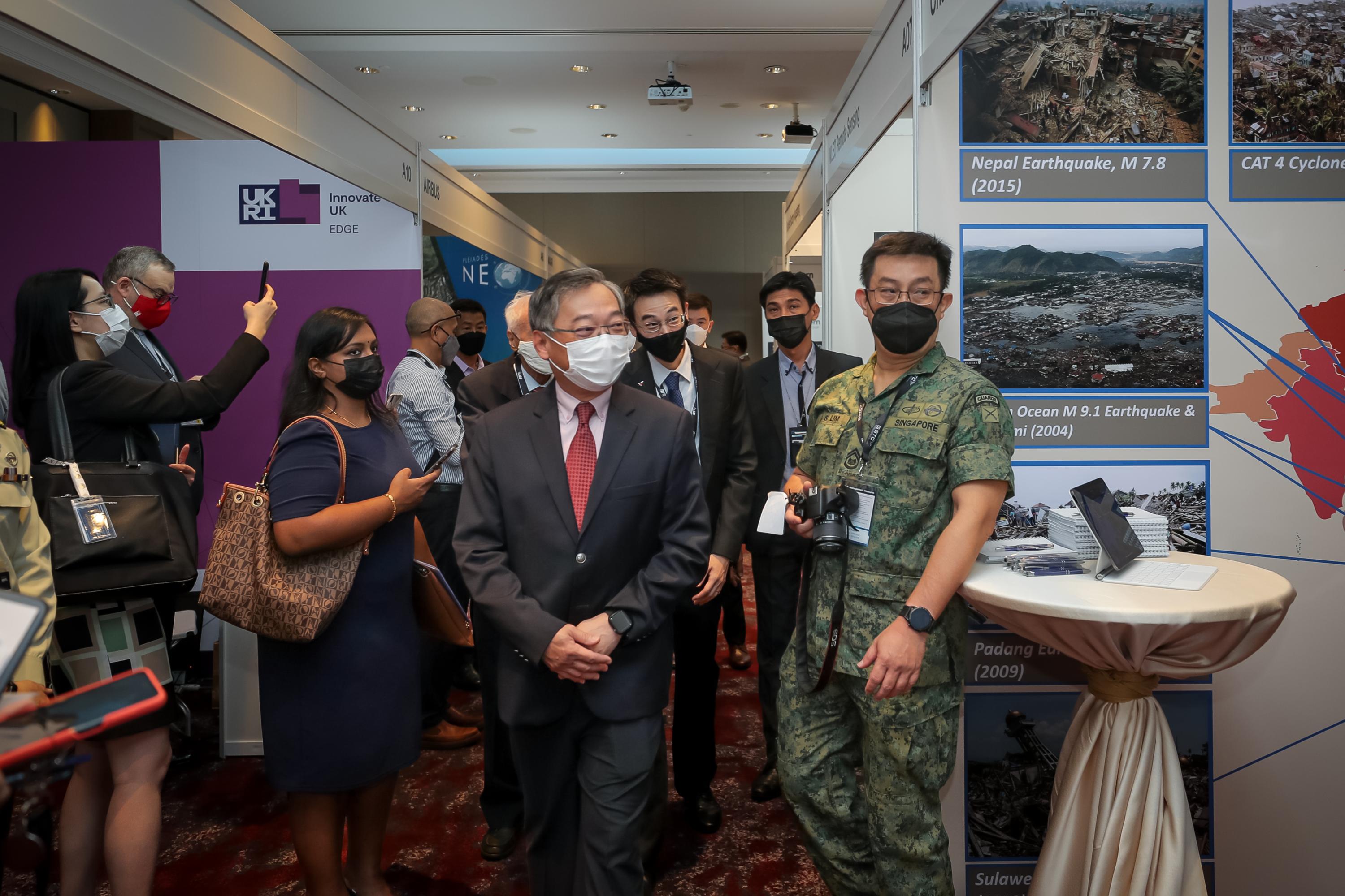 Trade and Industry Minister Gan Kim Yong touring the exhibition booths at the Global Space and Technology Convention on Feb 9, 2022.