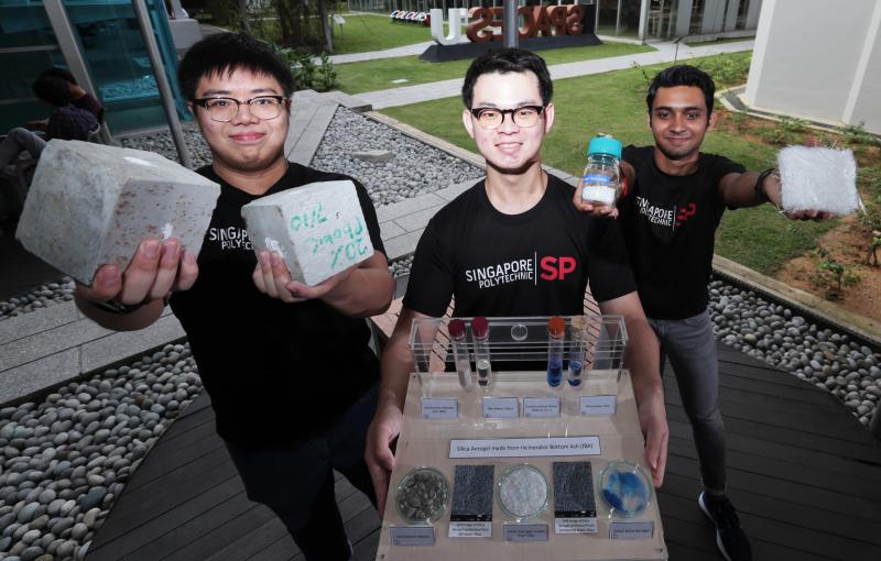Civil Engineering with Business students Sakalesh Ashoka Rugi, 20, and Nicolaus Syaiful and Jordan Lim, both 19, discovered that incinerated bottom ash (IBA), which is the byproduct of incinerating waste, could be turned into an aerogel.