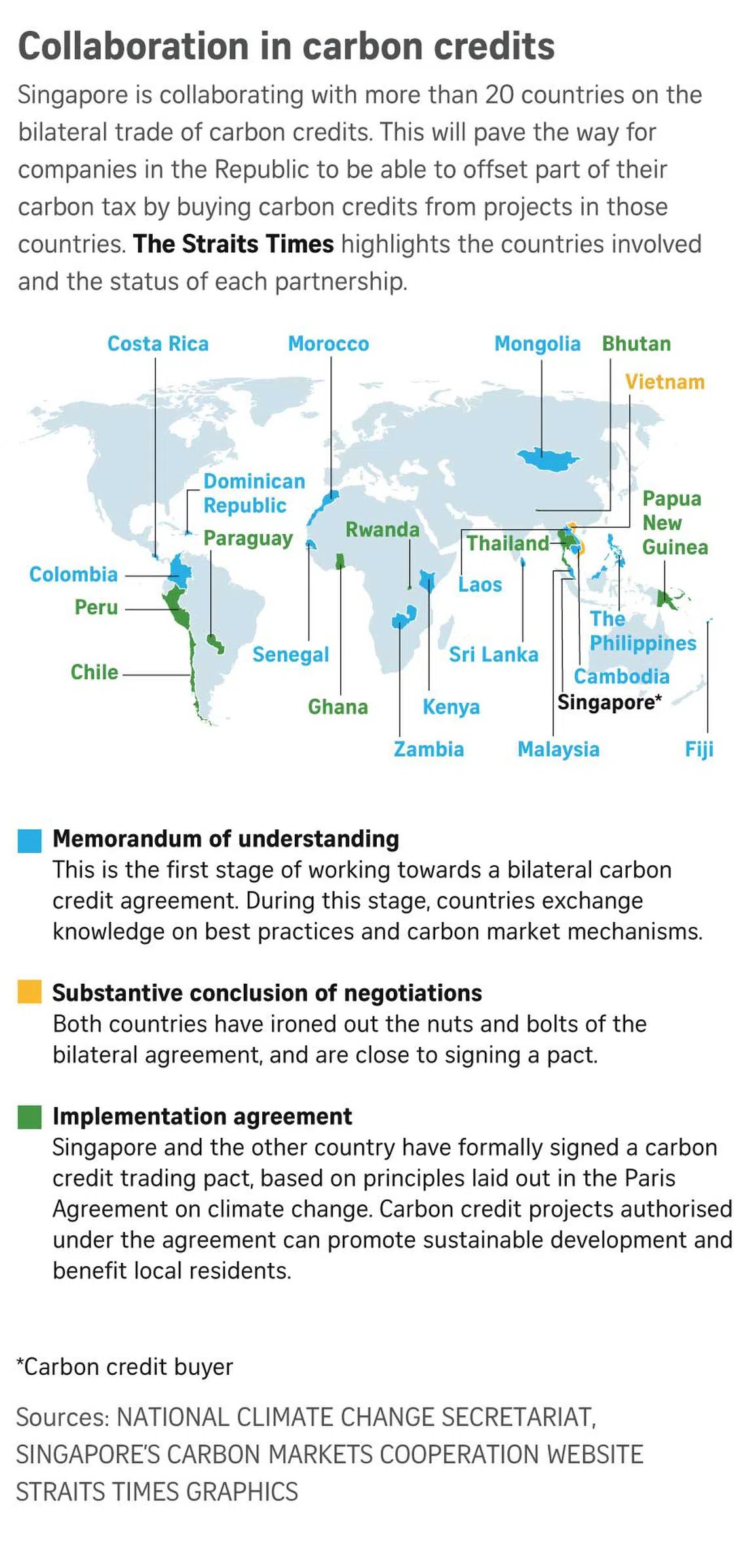 Credits used to offset Singapore’s national emissions can be bought only from projects in countries with which the Republic has implementation agreements.