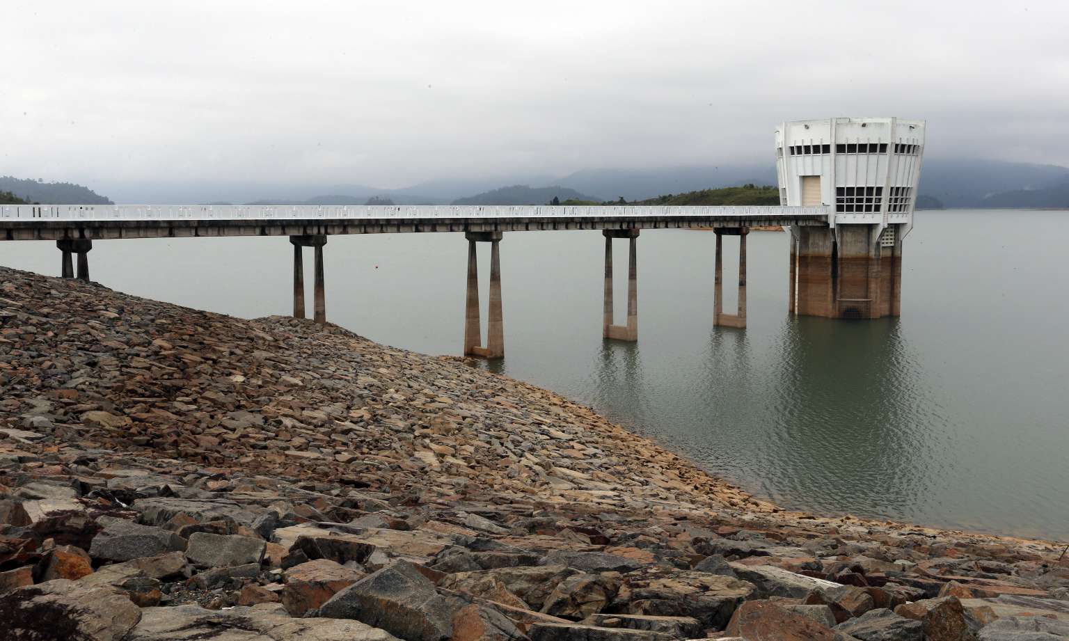 Due to dry weather, water levels in the Linggiu Reservoir in Johor is at an all-time low. It has dipped slightly to 54.18 per cent, from 54.5 per cent two weeks ago.