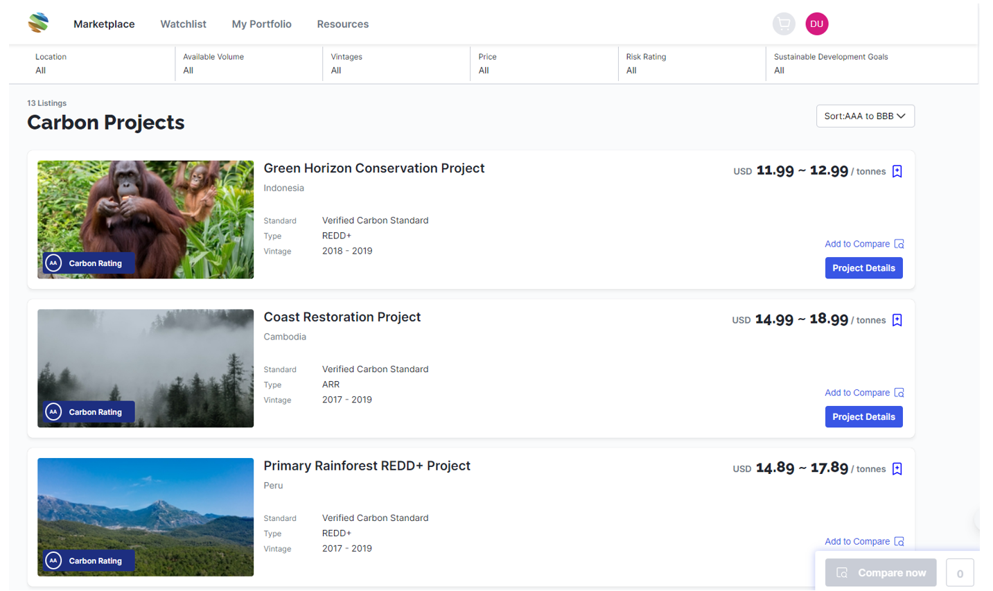 For example, the Project Marketplace platform will feature third-party ratings, supplemented with satellite monitoring technology data, of the various carbon projects listed on it.