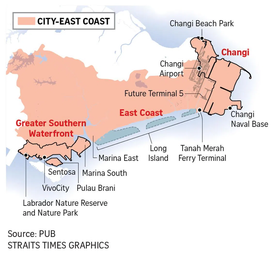 The segment between the Greater Southern Waterfront and Changi will be protected by the previously announced Long Island.