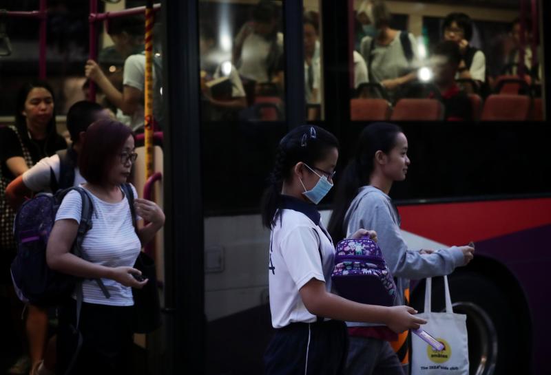 A student from Nanhua Primary School wearing a mask while walking to school on Sept 16, 2019.