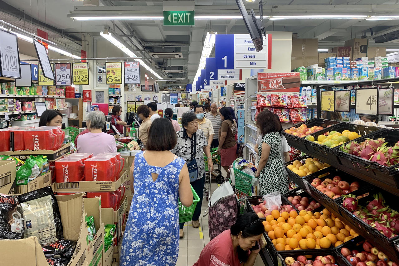 Shoppers at FairPrice supermarket at 475 Tampines Street 44 on March 17, 2020.