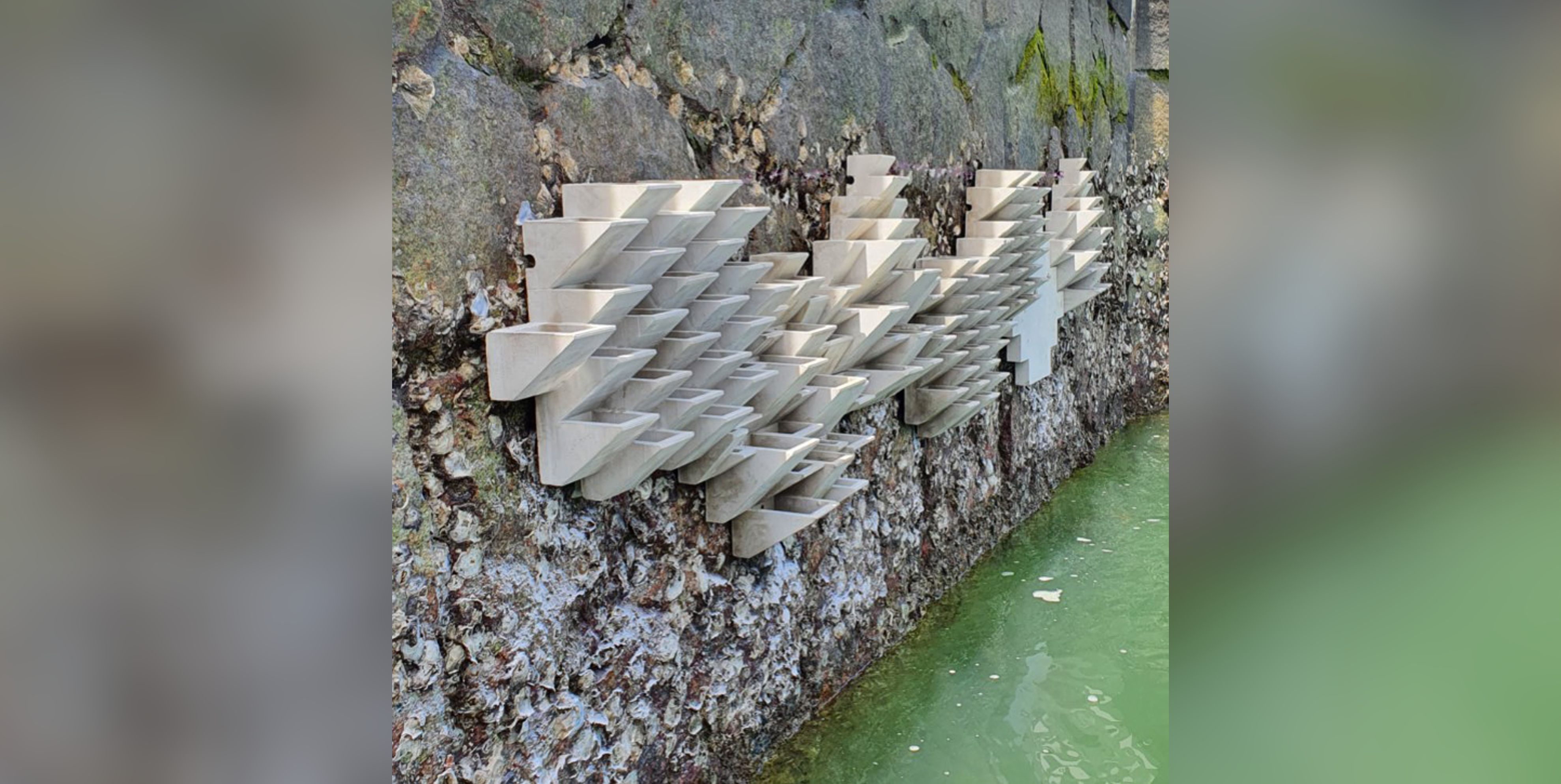 The concrete tiles, from wedge-shaped "rock pools" to domes depending on the surface they are placed on, act as homes that are optimised to improve the variety of marine life.