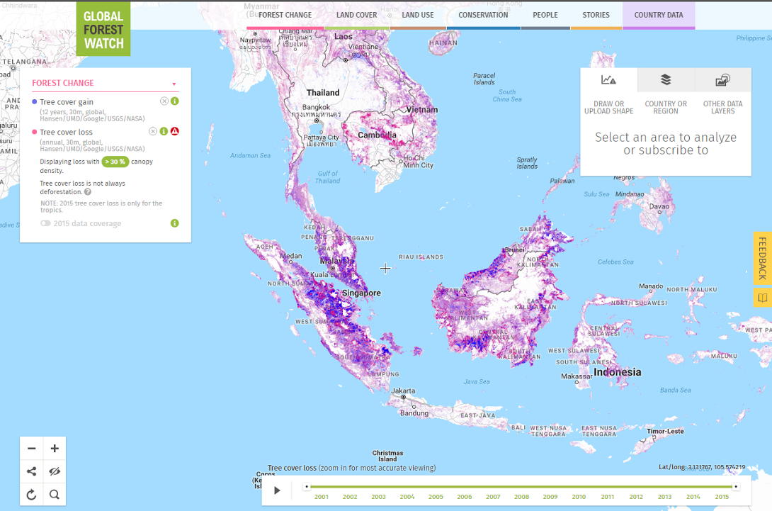 The GFW also consolidates data from various sources such as National Aeronautics and Space Administration satellites and Google Maps, providing statistics that can be used to identify trends of tree cover over time through algorithms designed by Professor Matthew Hansen at the University of Maryland.