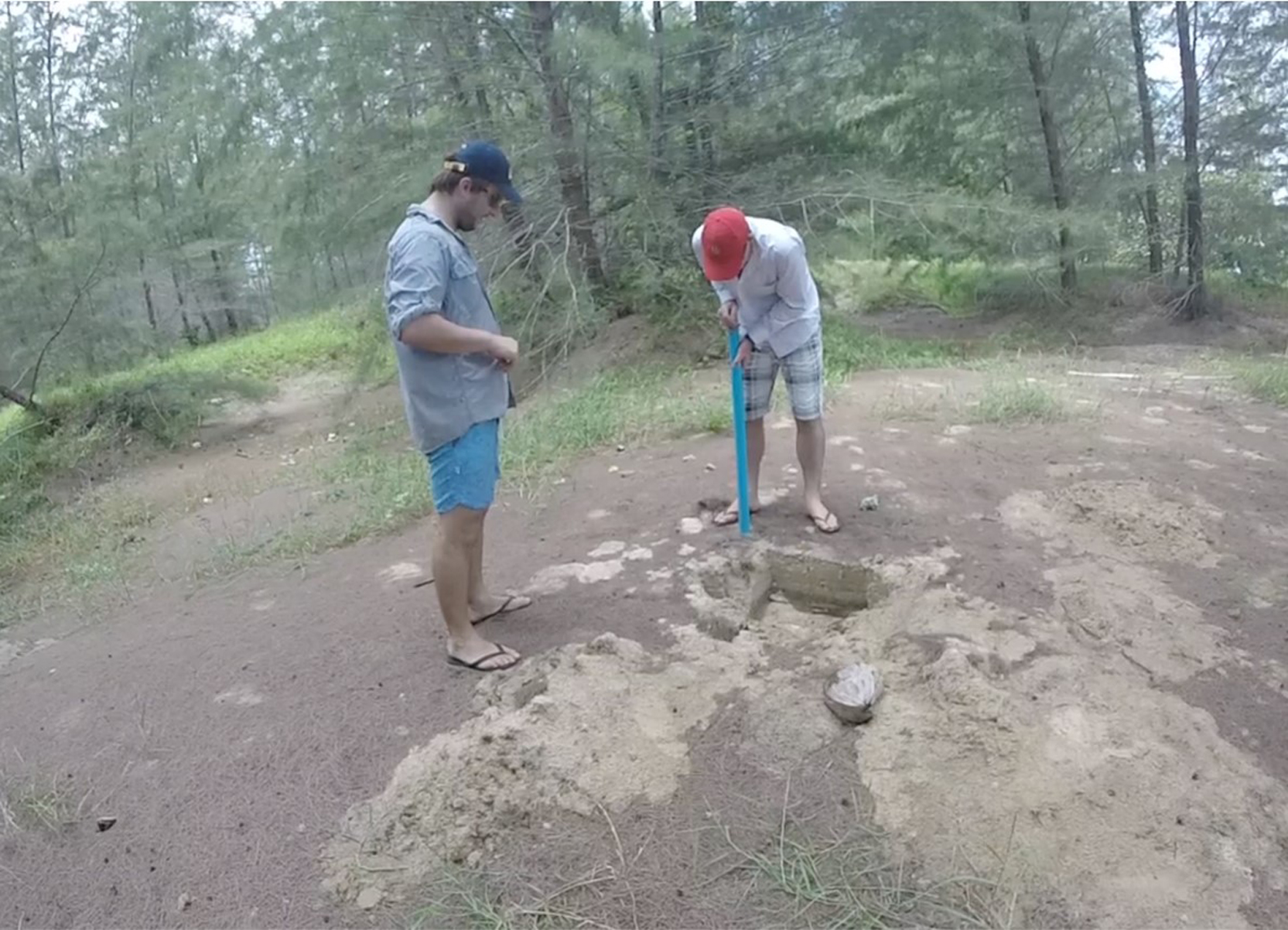 Adam Switzer (right) and Chris Gourmanis core sediment samples from storm deposits in Phra Thong Island.