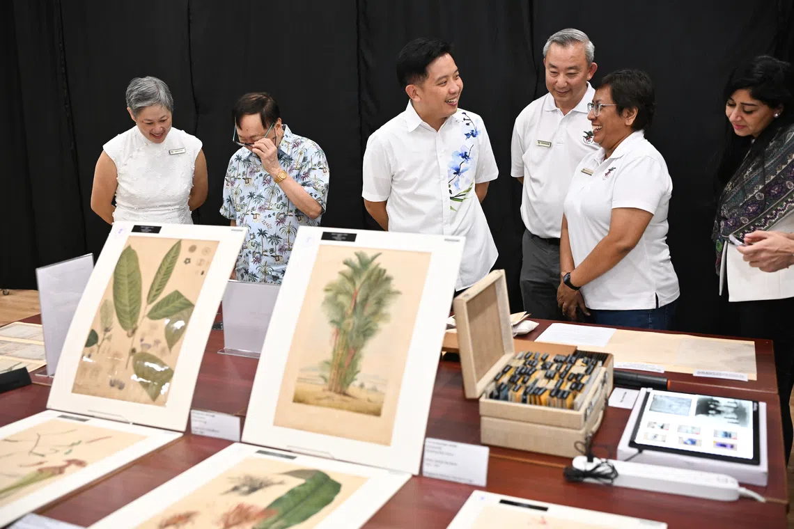 Minister of State for National Development Alvin Tan (third from left) looking at archival materials inside the Singapore Botanic Gardens’ Library of Botany and Horticulture on Oct 28.