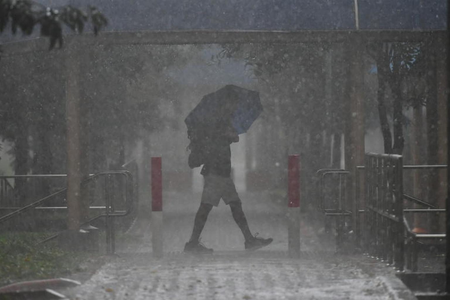 A downpour in Tampines on Nov 9, 2017. November has seen several rainy days, with flood alerts raised on some of them.