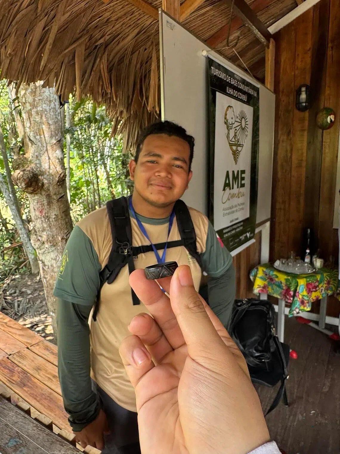 Luca, a resident of Combu Island, gave the writer a ring as a keepsake of their time together.